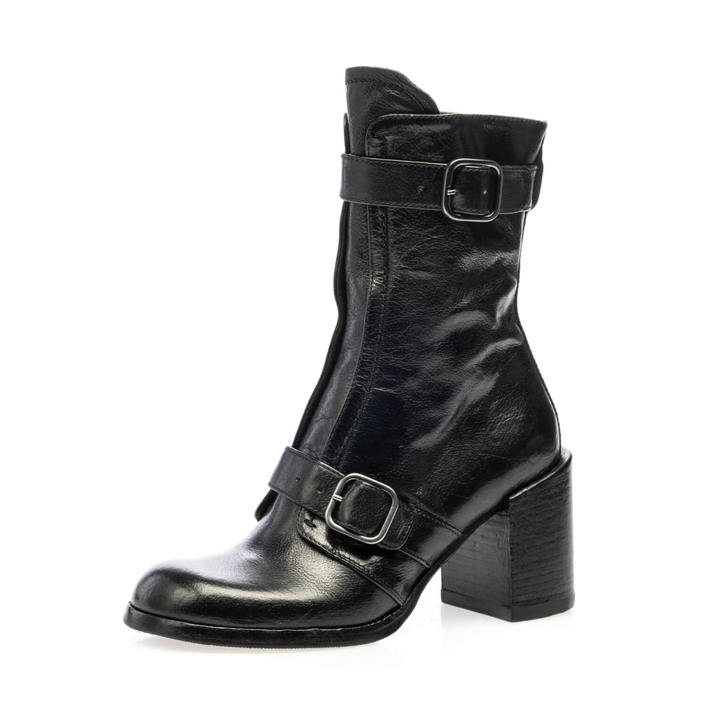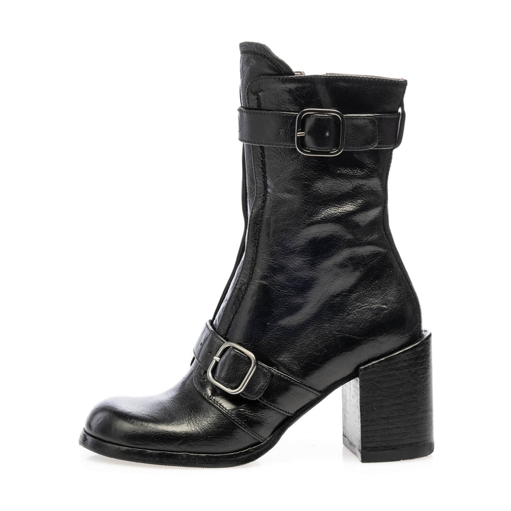 ankle boot with two buckles and zip