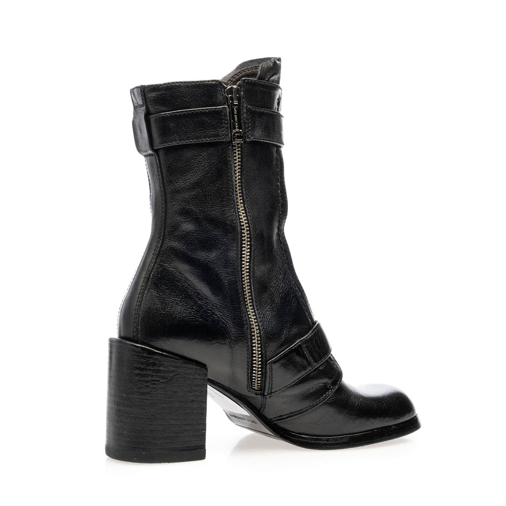 Ankle boot with two buckles and zip shoe made in black buffalo