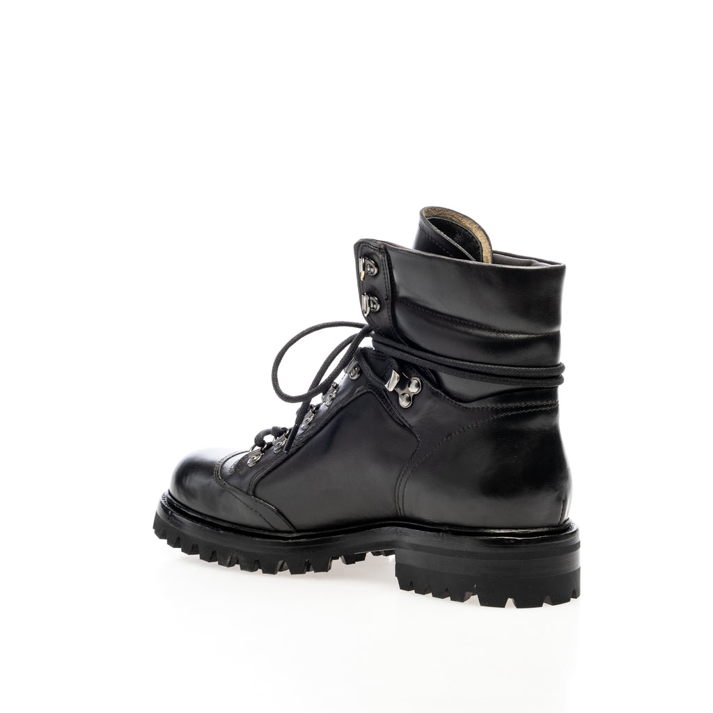 Combat boot shoe made in black calf