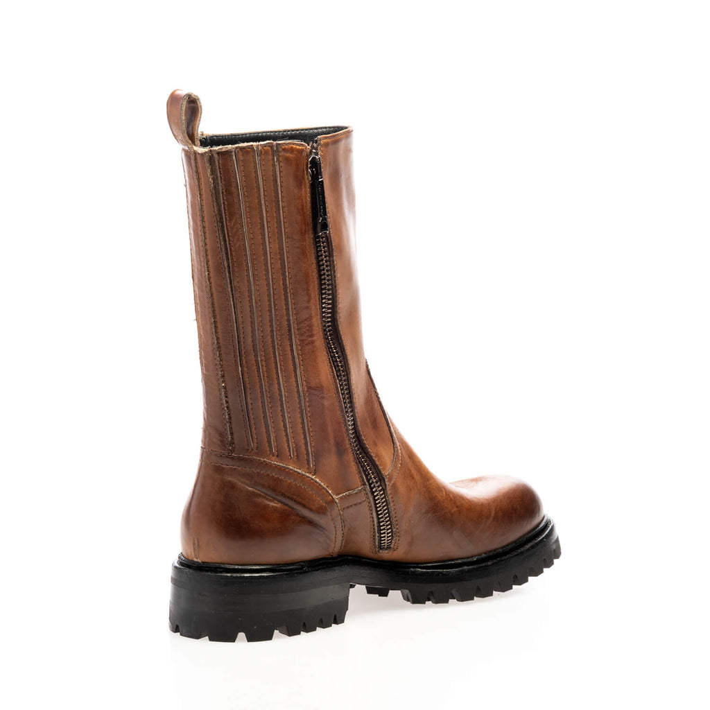 Boot with elastic and zip shoe made in brown terracotta calf