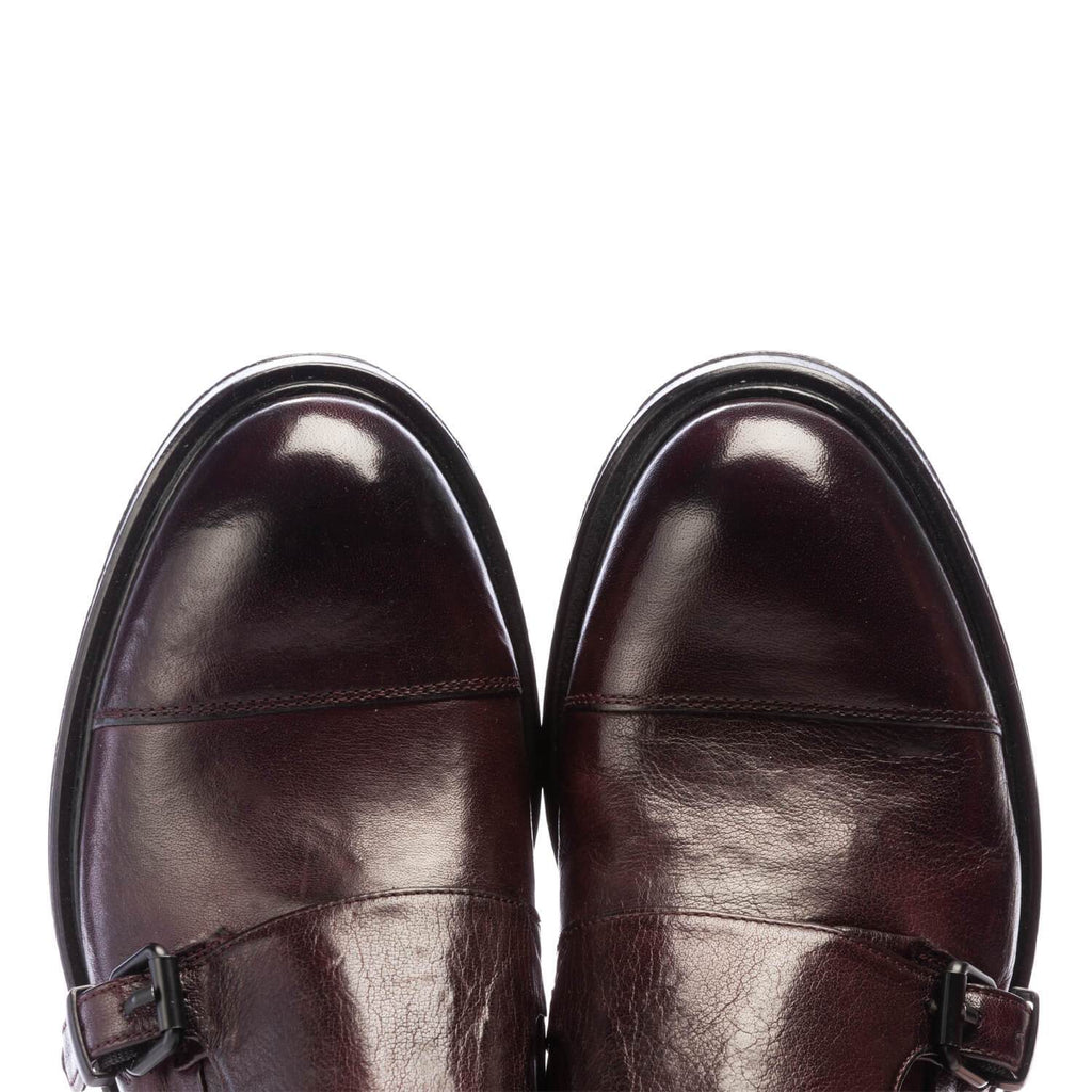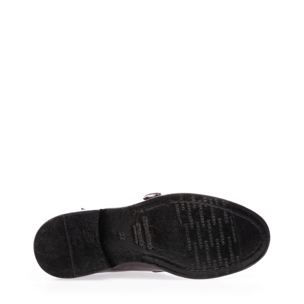 Shoe made in plum buffalo leather