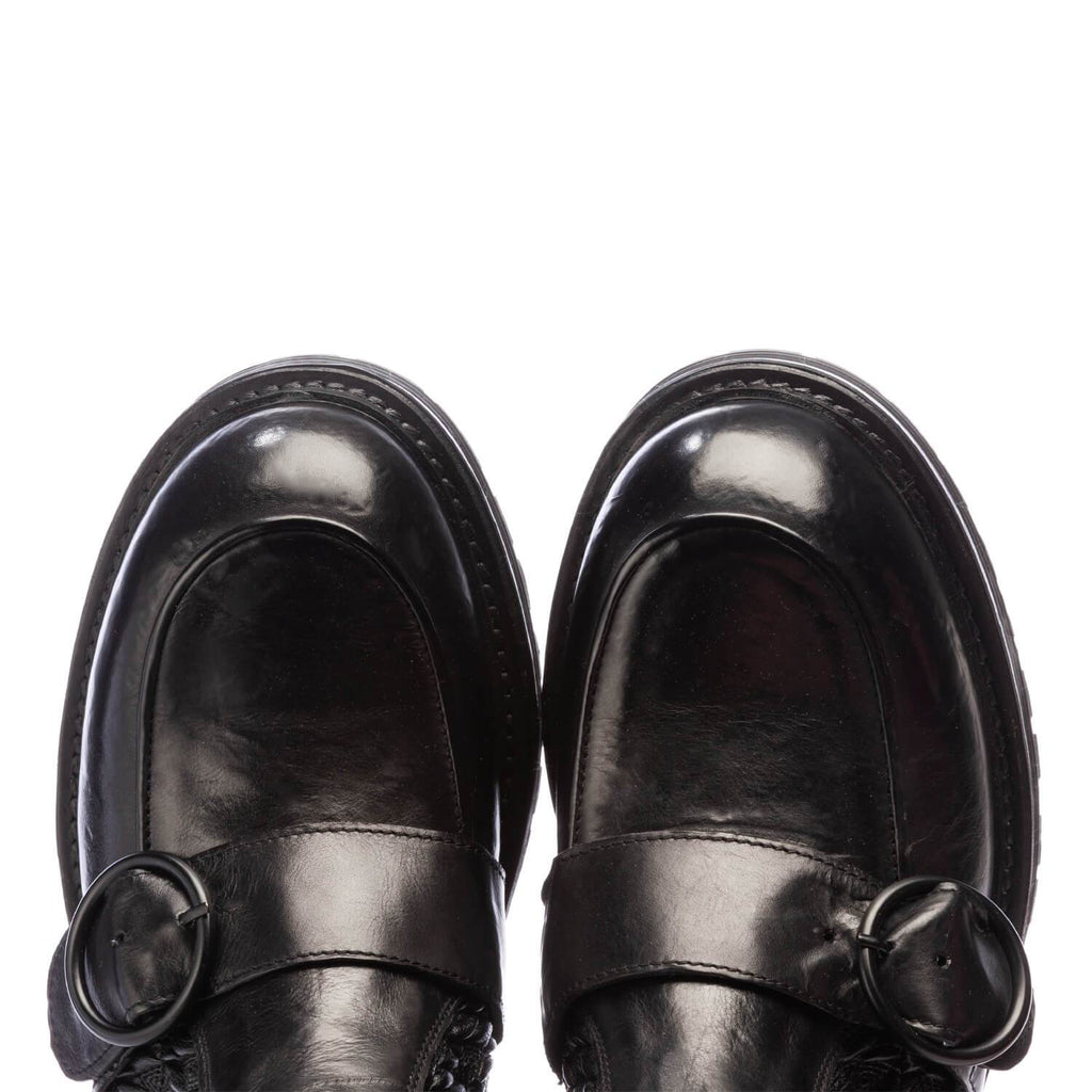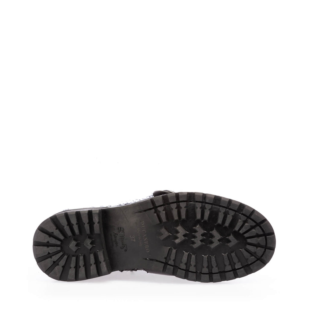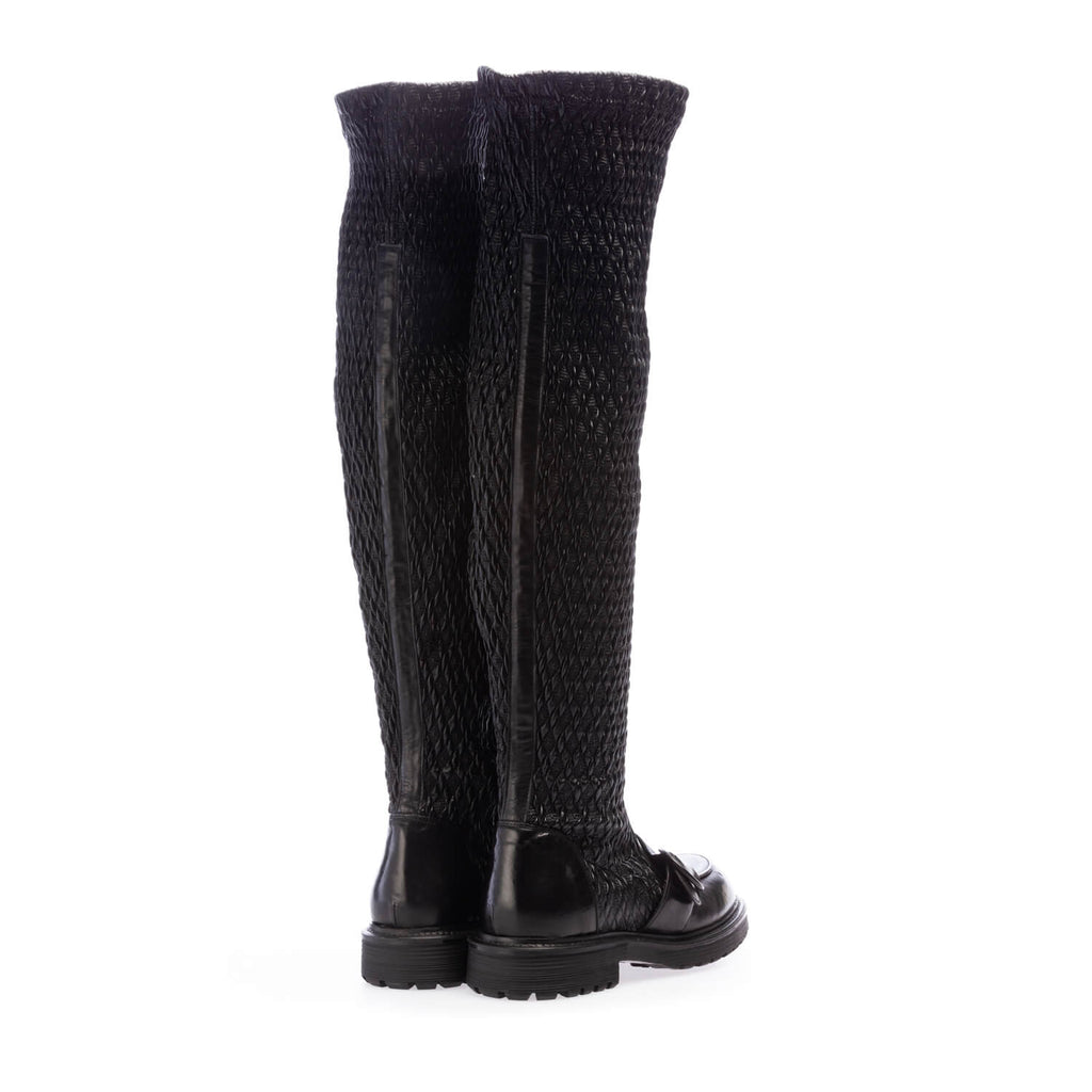 Boots with bucke made in black hayden leather and stretch black embroidered