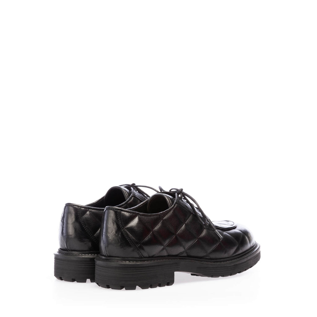 Lace-upmade in black buffalo leather with materasse' processing