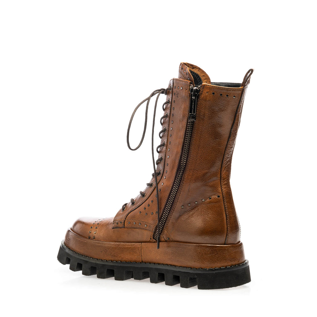 Ankle boot with laces and studs shoe made in brown 1982 buffalo